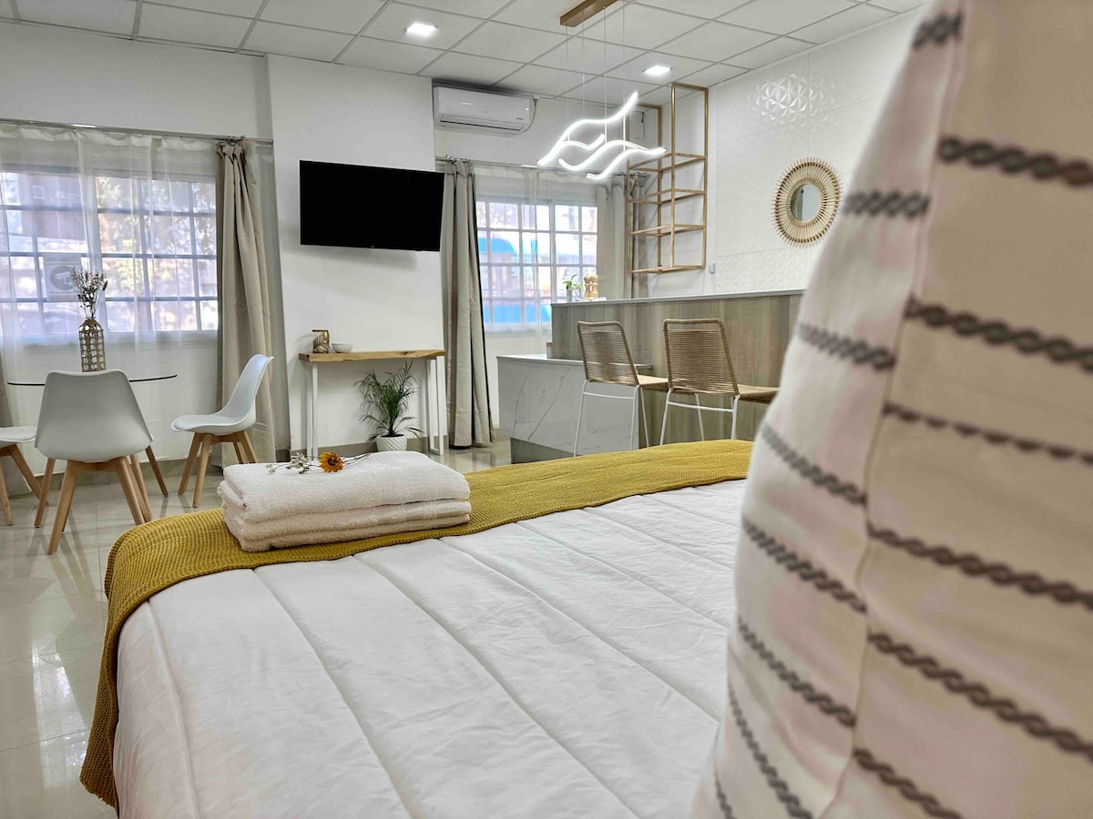 市民公園の前に位置する、ロケーションと絶好の眺めを備えたこの中心部のワンルームでスタイリッシュな体験をお楽しみください。主要な観光スポットや、街の美食の中心地であるアリスティデス・ビジャヌエバ通りから徒歩圏内にあります。 1人または2人に最適で、快適で、明るく、明るい。最近改装され、ゲストの安全と快適さのためのすべての電気設備が備わっています。
