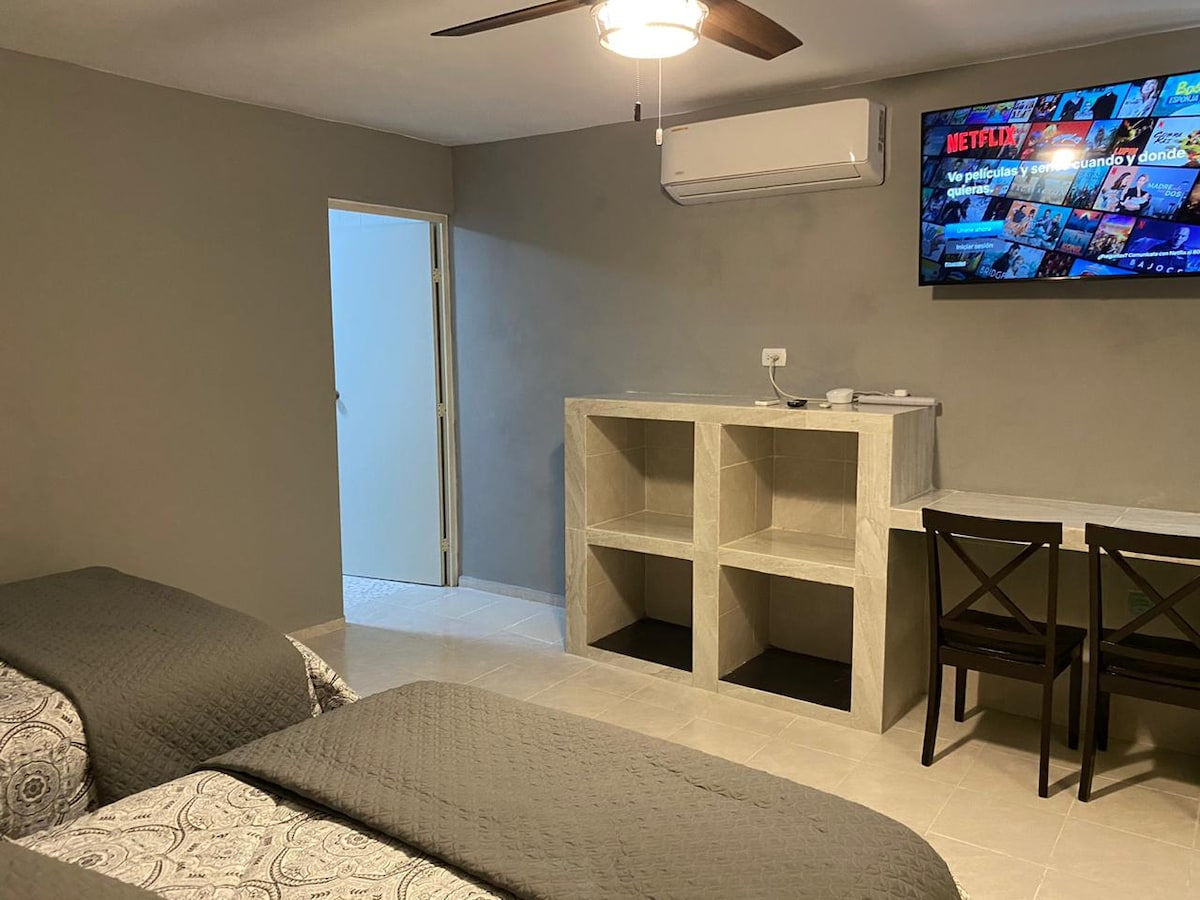 この小さなキッチン付きのワンルームは、カンクンとその周辺の地元の生活を体験したい1人または2人の旅行者に最適です。カンクンの中心部、この若い街の最初の地区の1つに位置しています。 重要!!チェックインまたはチェックアウト時に支払う必要がある地方税(衛生税)があります。1泊85ペソ、現金またはAirbnbを通じてカードで支払います。