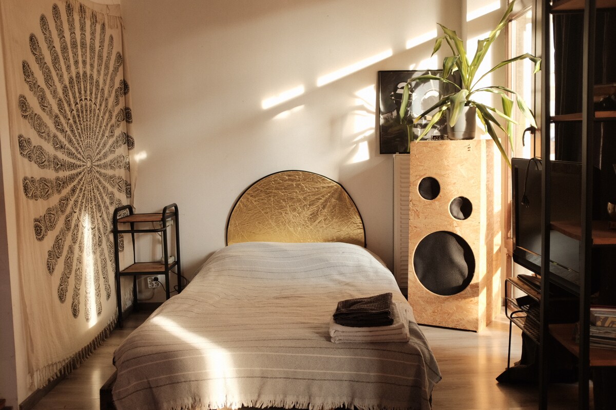 A sunny and warm apartment is located in the central district of Tbilisi - Saburtalo Sulkhan Tsintsadze street. In the newly renovated apartment, with a modern design you can find everything you need for a comfortable stay. Around the house, there are supermarkets, cafes, and public transport 1 minute within walking distance. There is a bathroom, a double bed, a balcony, and a kitchen with all the necessary equipment. The elevator is paid for, the cost is 5 Georgian Tetri.