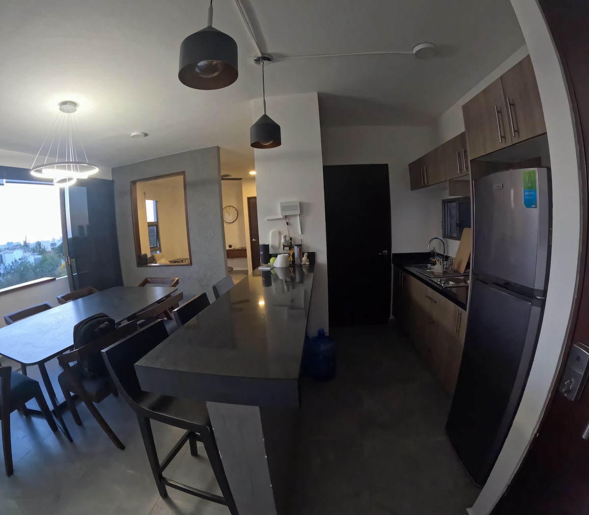 このユニークで静かな場所でリラックスしてください メリダの北部にあるモンテベロに位置し、屋内外で生活を楽しむためのあらゆるサービスと快適さを提供しています。 説明: -クローゼット付きベッドルーム - リビングルーム、キッチン、クイーンサイズのベッドルーム、エアコン、ファン、電子レンジ、コーヒーメーカー、ブレンダー、グリル、ボイラーなどが備わっています。 特徴 屋根付き駐車場 アメニティー。- 屋上、プール、バーベキューエリア、テラス、映画室、コワーキングエリア