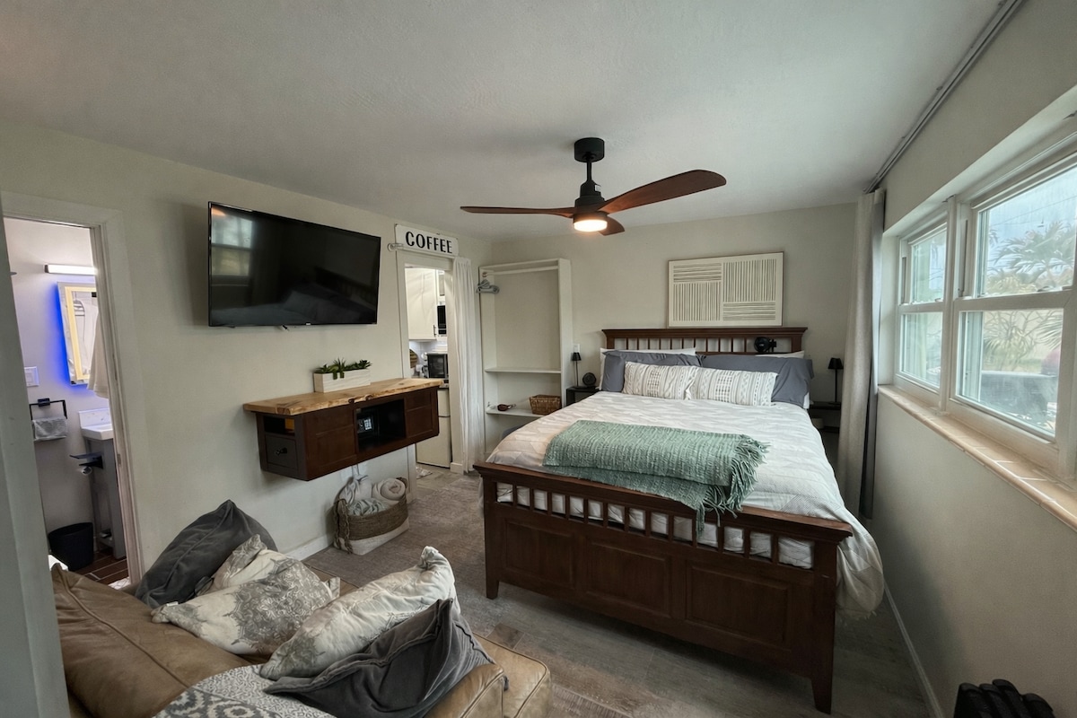 メリットアイランドの中心部に位置する快適な1ベッドルームスイートには、快適なベッドルーム、フルバスルーム、ミニ冷蔵庫、電子レンジ、トースターオーブンを備えたキッチンがあり、軽食やおやつに最適です。 美味しいレストランや活気ある地元のバーからわずか数分の場所にあるこのスイートは、ブレバードの魅力を存分にお楽しみいただくのに最適な拠点です。 ポート・カナベラルまで車でわずか10分で、クルーズ旅行者が旅の前後に滞在するのに理想的な場所です!