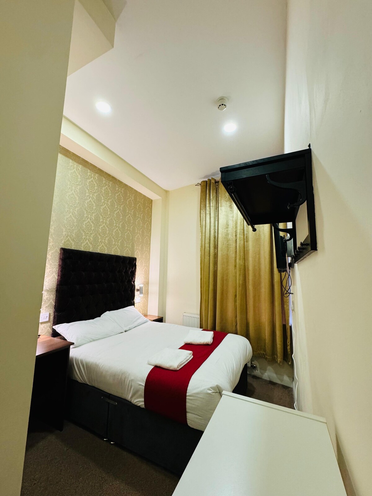 このダブルルームはコンパクトでスマートにデザインされており、ぐっすり眠るのに最適です。想像してみてください。4つ星の雰囲気のマットレスを備えた快適なベッドでゆっくりとおくつろぎください。客室には、エアコン、テレビ、無料Wi-Fi、スイートバスルーム、遮光ブラインドが備わっており、快適にお過ごしいただけます。こちらは10平方メートルのとても小さなお部屋ですのでご留意ください。 1泊1人あたり2.40ポンドのリバプール市税はAirbnbの料金に含まれていないことにご注意ください。ホテルに直接お支払いください。