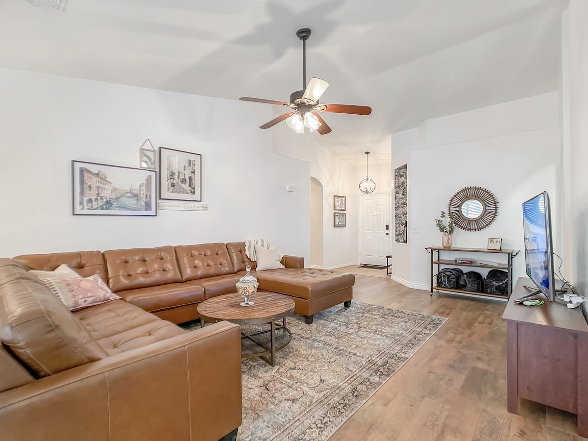 Rockhofer Haus Mesaへようこそ。閑静なファミリー向けのエリアの中心部にあり、US 60へのアクセスも便利です。ご家族やお友達と一緒にリラックスしてください。プールをお楽しみください!仕事が必要な場合は、快適なデスクが用意されており、簡単に仕事ができます。 以下のイベントの日程が決まり始めています: WASTE MANAGEMENT PHOENIX OPEN、2026年2月2日~8日 スコッツデール・アラビアン・ホース・ショー、2026年2月12日~22日 アリゾナ・ルネッサンス・フェスティバル