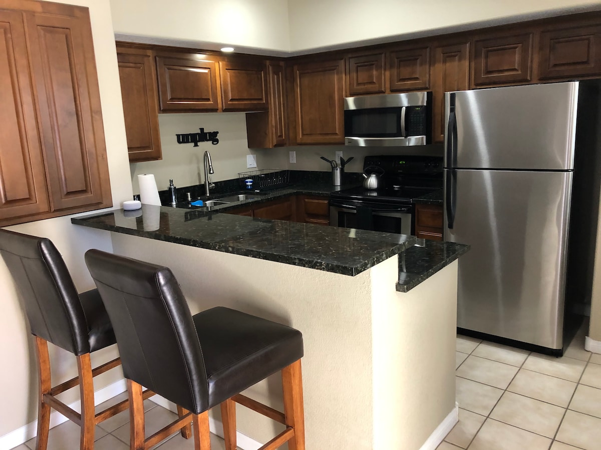 スポーツビレッジにある美しく改装されたコンドミニアムでおくつろぎください。ステンレススチール、花崗岩のカウンタートップ、設備の整ったキッチン、洗濯機と乾燥機。ケーブルテレビとRokuがあります。Netflix/Disney +、Huluアカウントにサインインしてください。リゾートのすべてのアメニティをお楽しみください:大きなプール2つ(大人用1つ)、ホットタブ2つ、キッズプール。プールは年中温水です。テニス、ピックルボール、ラケットボールのコートと用具。 エクササイズルーム、ビリヤードテーブル、フーズボール、ミニゴルフ、卓球。