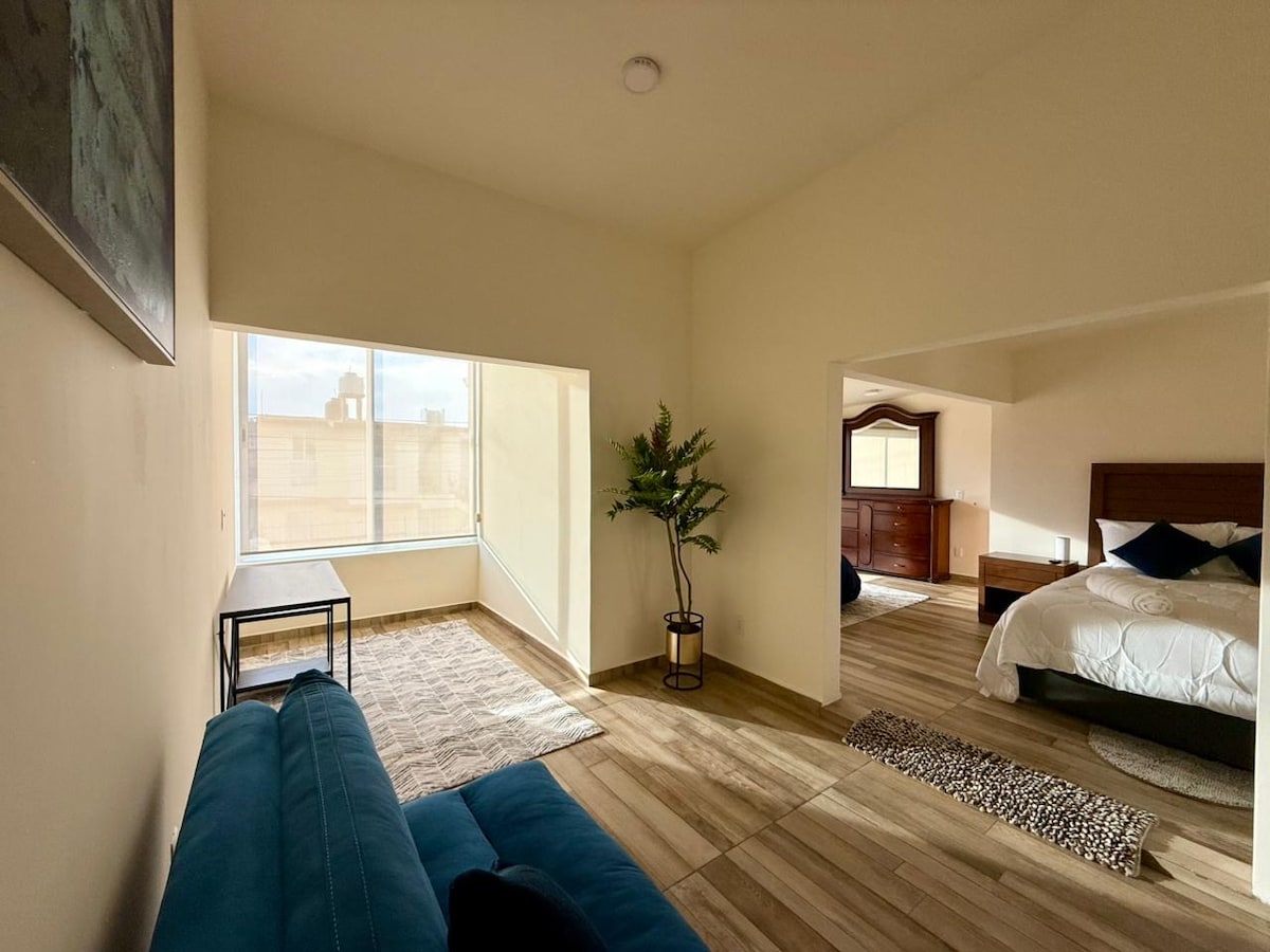 家族や同僚と一緒に、この静かで、中心部に位置し、広くてとても快適な宿泊施設をお楽しみください。最も人気のあるアメニティが手の届くところにあります。 徒歩でメテペックの典型的な中心部まで10分。車でトルーカ中心部まで23分、スポーツシティまで12分、タウンスクエアまで9分、メテペックギャラリーまで10分、トルーカ国際空港まで21分。 主要なセルフサービス店、映画館、コンビニエンスストア、学校などに非常に近いです。