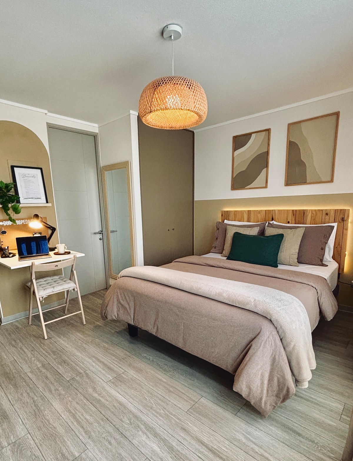 Moderno y acogedor departamento con aire acondicionado en el corazón de Santiago. A pasos del metro y del Centro Histórico, rodeado de museos, mercados y restaurantes. Cama king, cocina equipada, balcón y wifi rápido, ideal para viajes o estadías largas. Edificio seguro con conserje 24/7. Atención personalizada, check-in flexible y recomendaciones locales para que disfrutes la ciudad como un residente, con comodidad y tranquilidad.