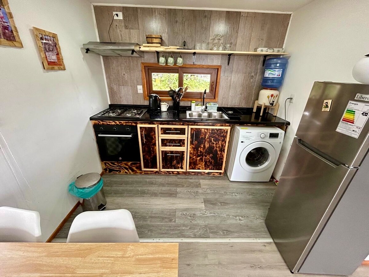 4人用の設備が整ったこのユニークなキャビンでリラックスしてお楽しみください。プライベートな環境で静けさと休息が保証されています。内海の島々とパタゴニア山脈の広大な景色と美しい日の出を眺めることができます。海とエステロから500メートルの場所にあり、ハイキングやカヤック(ダブルカヤックをご用意)で楽しめます。コットンのシーツとタオル、薪ストーブ、グリル、フルキッチン、コーヒーメーカー、Wi-Fi(Starlink)、テレビ。近くには美しい観光名所があります。ペットの同伴はできません。