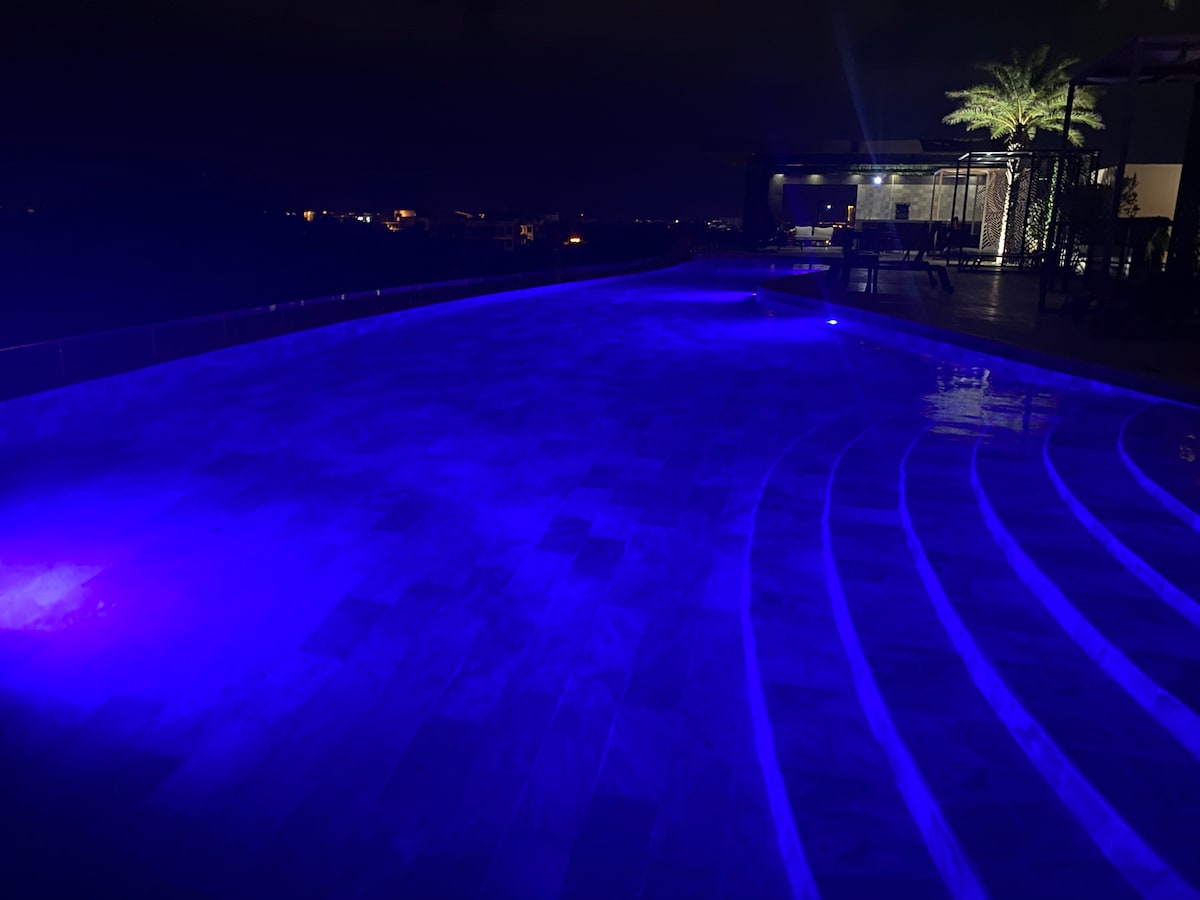 This unit has a unique style of its own. It’s fully black which makes it perfect to relax, and binging on your favorite movies/series. King size mattress and 75” TV *AC/Heater *Fast Wifi *Everything on pics fully PRIVATE Enjoy the beautiful sunset from our two-person bathtub & Terrace (Best view in the area!)🌅 Outdoor Kitchen 🍳/ Living Room with fire pit & MovieTheater! 🎥 Located inside a gated residential (24/7 security) Walking distance to local bars, Restaurants, and MalibuBeach(~1mile)
