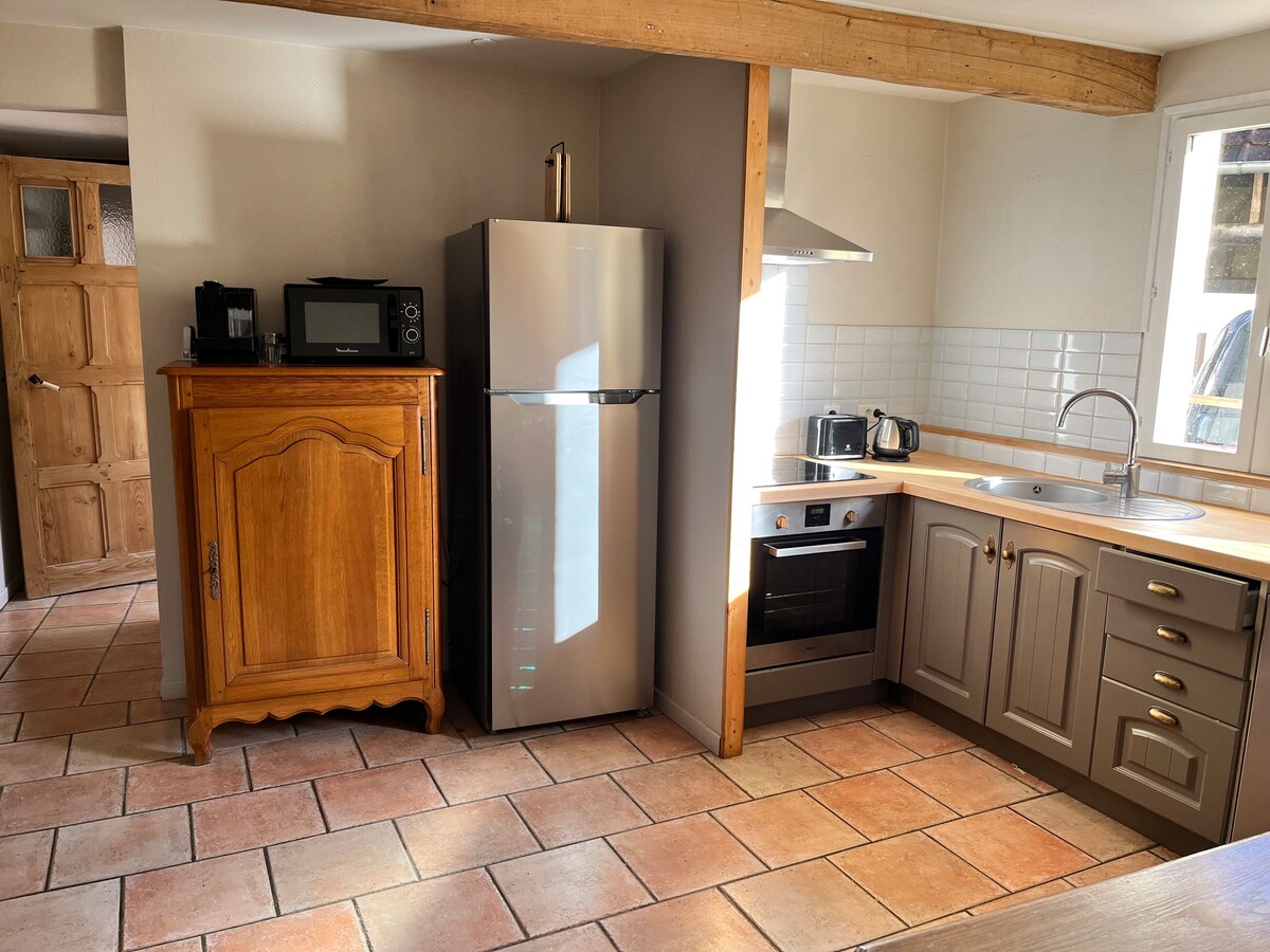 Charming single storey house with wood burning fireplace south facing west private and enclosed garden and terrace. This cute place, nestled in an outbuilding of the owners' house, is located on the edge of a quiet lane with a large park with trees, nature and meadows as neighbours. This place, not far from the Baie de Somme, the sea and the forest, will be ideal for a weekend, a holiday, or a telecommuting break for couples or families.
