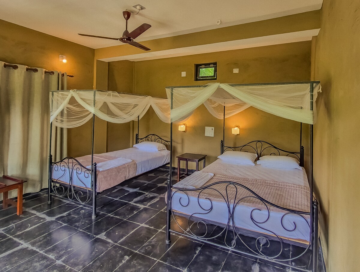 Our personal villas are 5 mins away from Bardia National park entrance. With complete privacy and well maintained rooms, kitchen and bathroom are aimed to provide our guest with homely experience, for both guest with family or sole travelers/researchers etc. Surrounded by nature with peaceful environment, our guests have option of going to resort 100 meters away for a quick meal or drink. Our partners at resort are continuously involved in providing activities such as jungle safari/walk etc.
