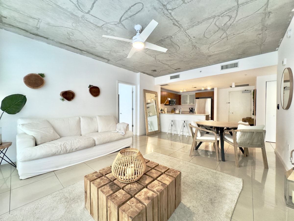 手数料なしの2/2コンドミニアムはゲストのお気に入りです! シュガーケーン・マイアミ・レストランとショップスモールから数歩のところにあり、広い専用パティオ、スマートテレビ、無料駐車場1台分をご利用いただけます。 サウスビーチからわずか15 ~ 20分のところにある当コンドミニアムは、プールやジムなどの素晴らしいアメニティを備えています。 パーティーは禁止です。ご予約前に必ずお読みください。 マイアミのデザイン地区の中心部に位置し、大人1人またはカップル1組につき1回限り50ドルの手数料が必要です。