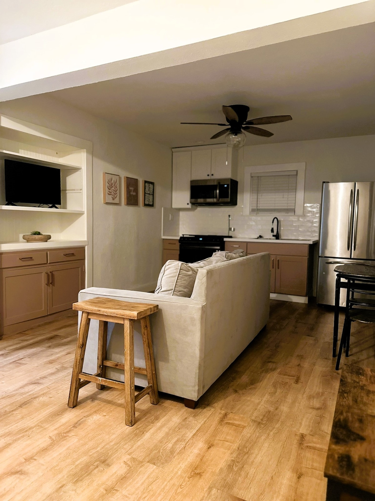 専用の入り口がある美しいアパートで、まるで自宅にいるようにくつろぎましょう。 フルサイズの家電が備わったキッチンで、農場直送の食材を使った食事を作りましょう。 リビングルームには50インチのテレビとBluetooth対応のサウンドバーがあります。 フルバスには美しいタイル張りのシャワーと洗面台があります。 快適なクイーンベッドでゆっくりとお休みください。 引き出し式クイーンサイズソファーベッドには2台目のベッドがあります。