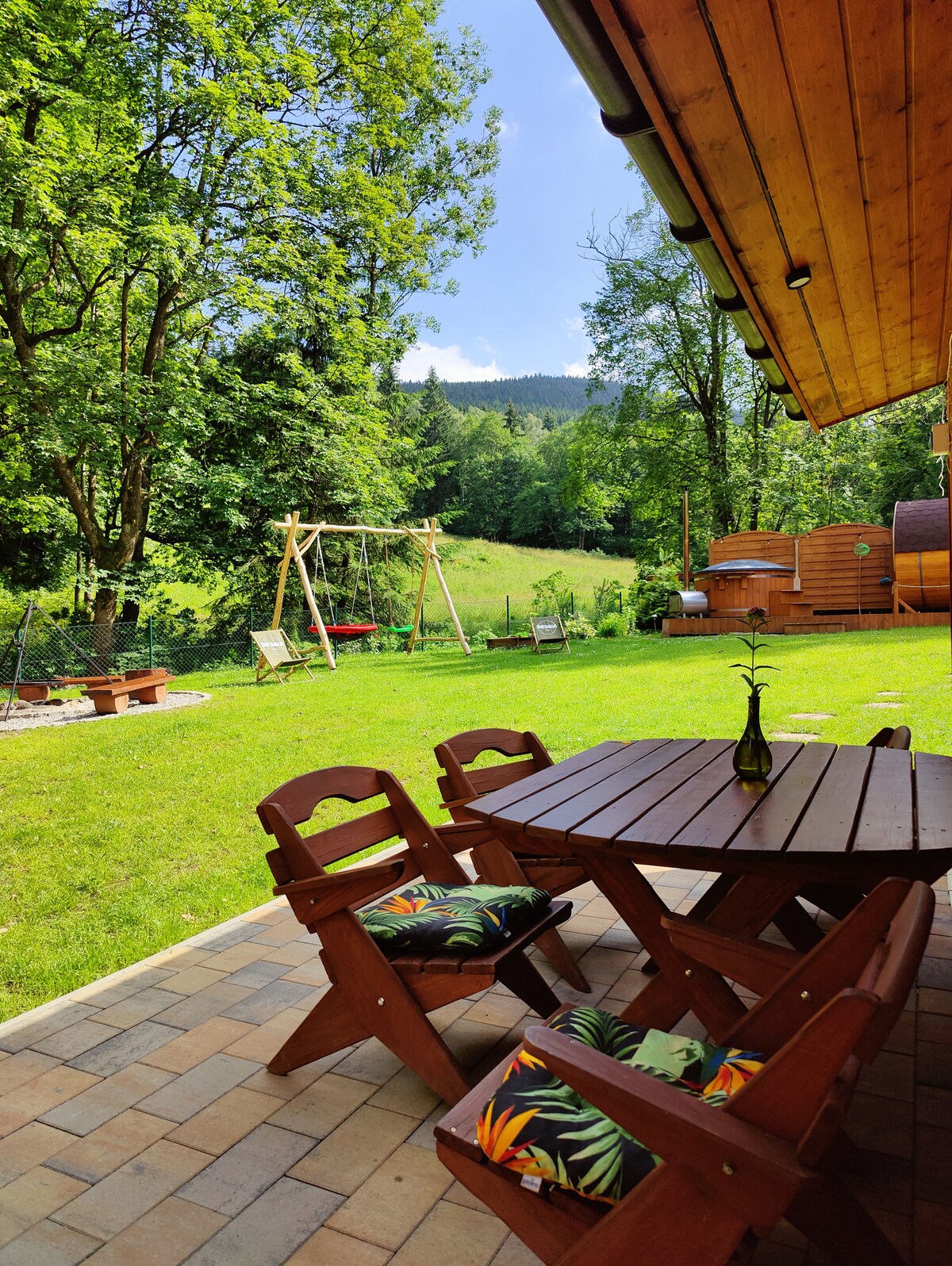 私たちの魅力的な木造の家に滞在し、美しい山の自然に浸ってください。暖かく居心地の良いインテリアは、周辺のトレイルやアトラクションを探索するのに理想的な拠点を提供します。エキサイティングな1日の後は、広々としたテラスでリラックスし、山や森の絵のように美しい景色を楽しんでください。夜は、薪で暖められたバスタブでリラックスして、忘れられない体験をお楽しみください。ロマンチックな旅行をお探しでも、家族旅行をお探しでも。