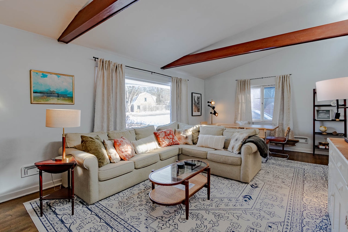 ヴィンテージと現代が融合した家で、本質的に魅力的で、気取らないデザインの空間を作り出します。 1948年に建てられた、風通しのよいケープコッドスタイルのこの隠れ家的な宿泊施設では、庭に隠れる屋外スパで友人とくつろいだり、洗練されたエレガントなキッチンで夕食を作って、日陰のデッキで楽しんだりできます。 ピンク色のつた垂れ下がるスイカズラと居心地の良いインテリアが、懐かしさを感じさせる魅力をさらに高めています🌷🌷🌷