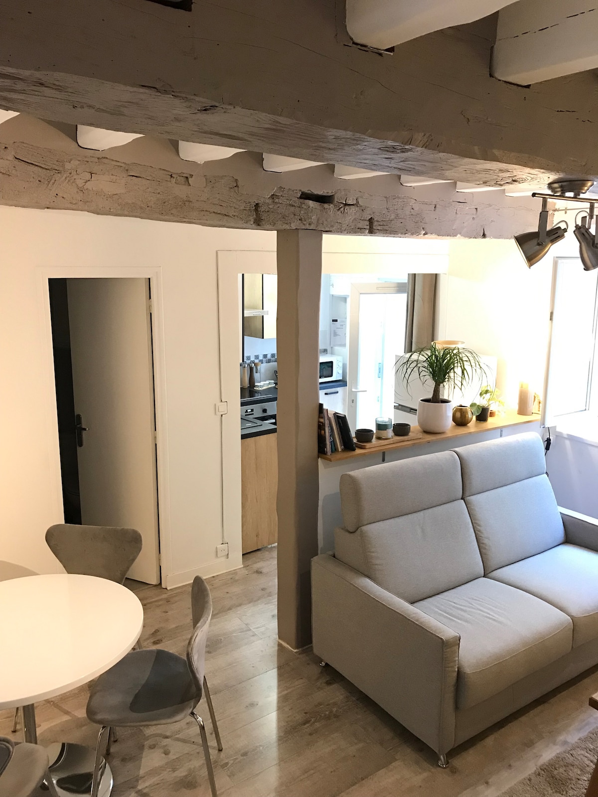 Notre appartement est située en plein coeur du centre ville, juste à côté des quais, de la place de la mairie et de l'horloge , dans une rue à sens unique calme et peu passante. La localisation est idéale pour visiter la ville à pied et profiter des commerces du centre ville à proximité (boulangerie, chocolaterie, cave à vin, bar à vin, restaurants, boutiques etc.).