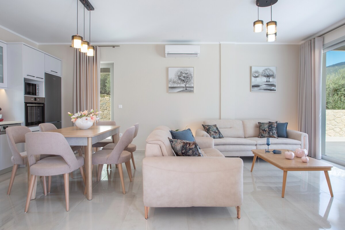 Heavenly Heights Villas is an exclusive three-villa retreat in the picturesque village of Evgiros, Lefkada, where dramatic mountain landscapes meet the endless blue of the Ionian Sea.Designed to host up to five guests, each villa offers an exquisite blend of elegance and comfort, making it the perfect sanctuary for families or groups seeking a refined escape.Expansive private outdoor spaces and individual pools invite guests to unwind in absolute seclusion, enveloped by the raw beauty of nature.