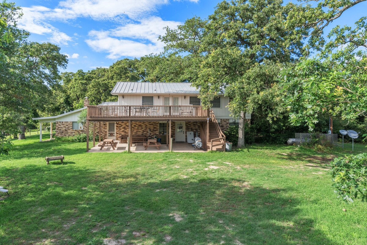 リラックスして自然を楽しみましょう! 私たちの宿泊施設はテキサス州テンプルに近く、オースティンから50マイル、キリーンから40マイル、ウェイコから30マイルの場所にあります。 「ウィスパリングポンズ」という名前のこの場所は、その立地のおかげで、きっとあなたの気に入るでしょう。 2つの池がある53エーカーの静かな敷地内にある、美しく広々とした4ベッドルーム、3バスルームの家です。 鹿、アヒル、ハト、カメが見られます。 家族の集まりやリトリートに最適です。 私たちの家には、ダブルオーブンや製氷機など、多くの設備を備えた広いキッチンがあります。