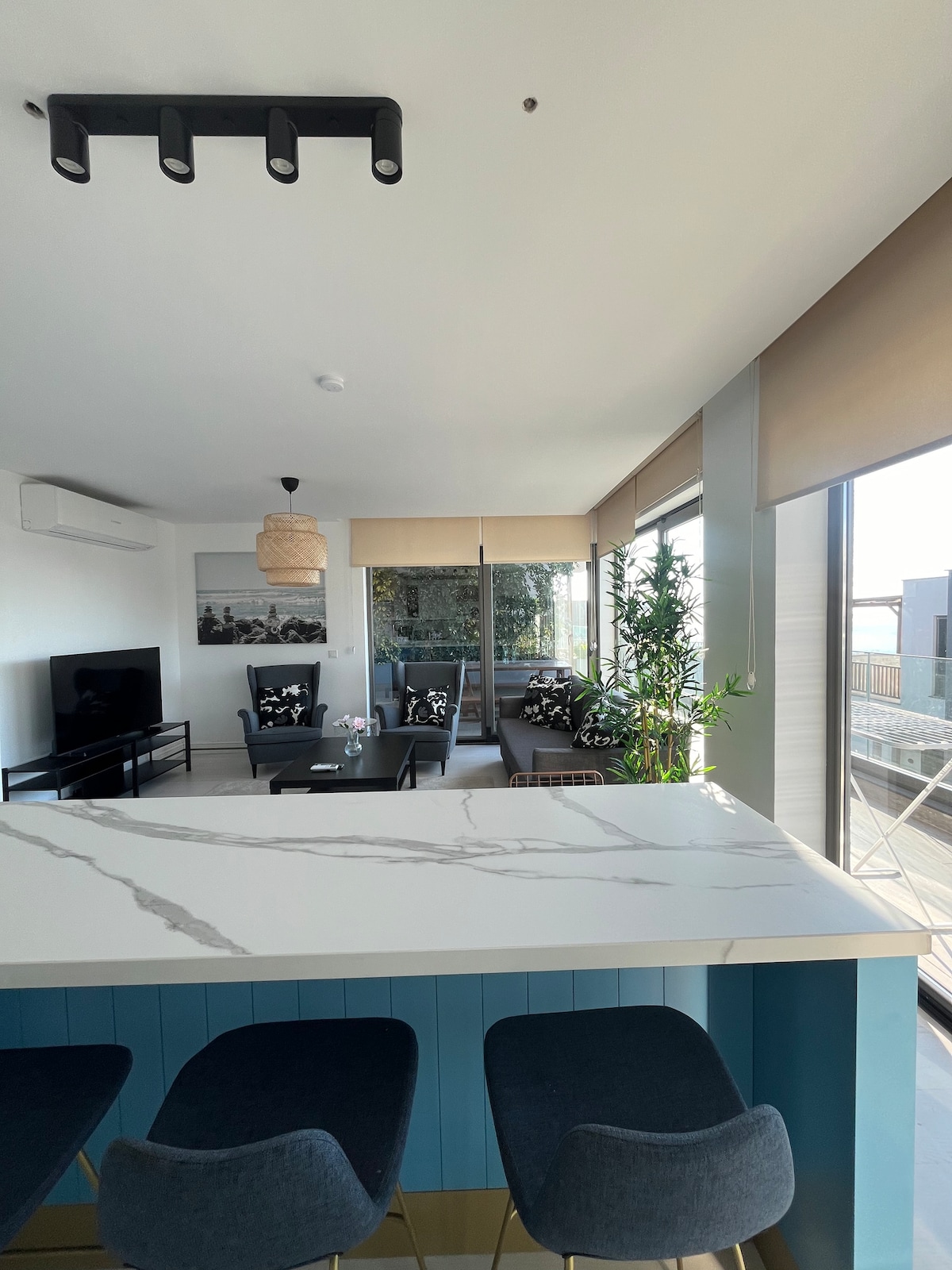 私たちの家には、3つのベッドルーム、2つのバスルーム、リビングルームがあります。大人8名様と乳幼児1名様が宿泊可能です。全室にエアコンと無料Wi-Fiが備わっています。温水器で一年中温水を供給しています。NetflixとDisney+をご利用いただけます。