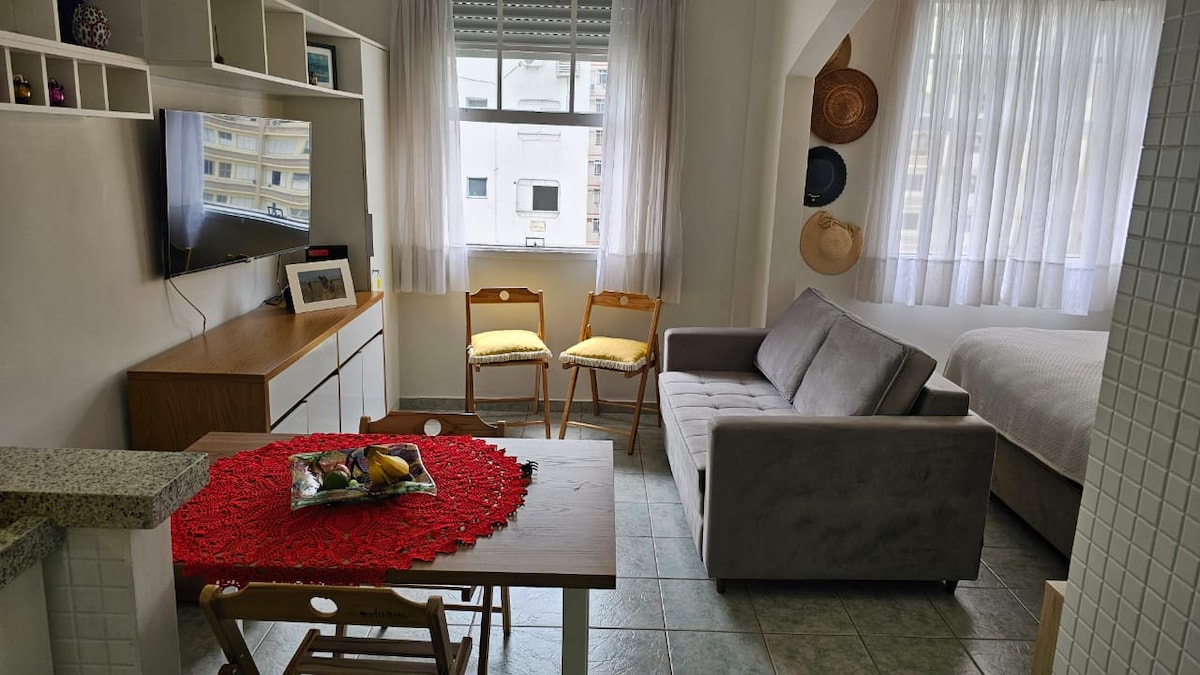 車やバスでサンパウロから来る方にはとても便利なアクセスです! アパートはサントスに着いて最初のビーチ、ジョゼ・メニーノビーチにあります。建物に駐車場があり、すぐ前にバス停があります。 **日曜日のチェックインについては、事前にお問い合わせください** 33平方メートルの新しく改装されたワンルームアパートメントは、ビーチの前にあり、快適に過ごせるように厳選された新しい家具が備わっています。 カップルに最適ですが、最大4名様までご宿泊いただけます。 サントスで数日過ごすなら「Nosso Apê 2」へ!