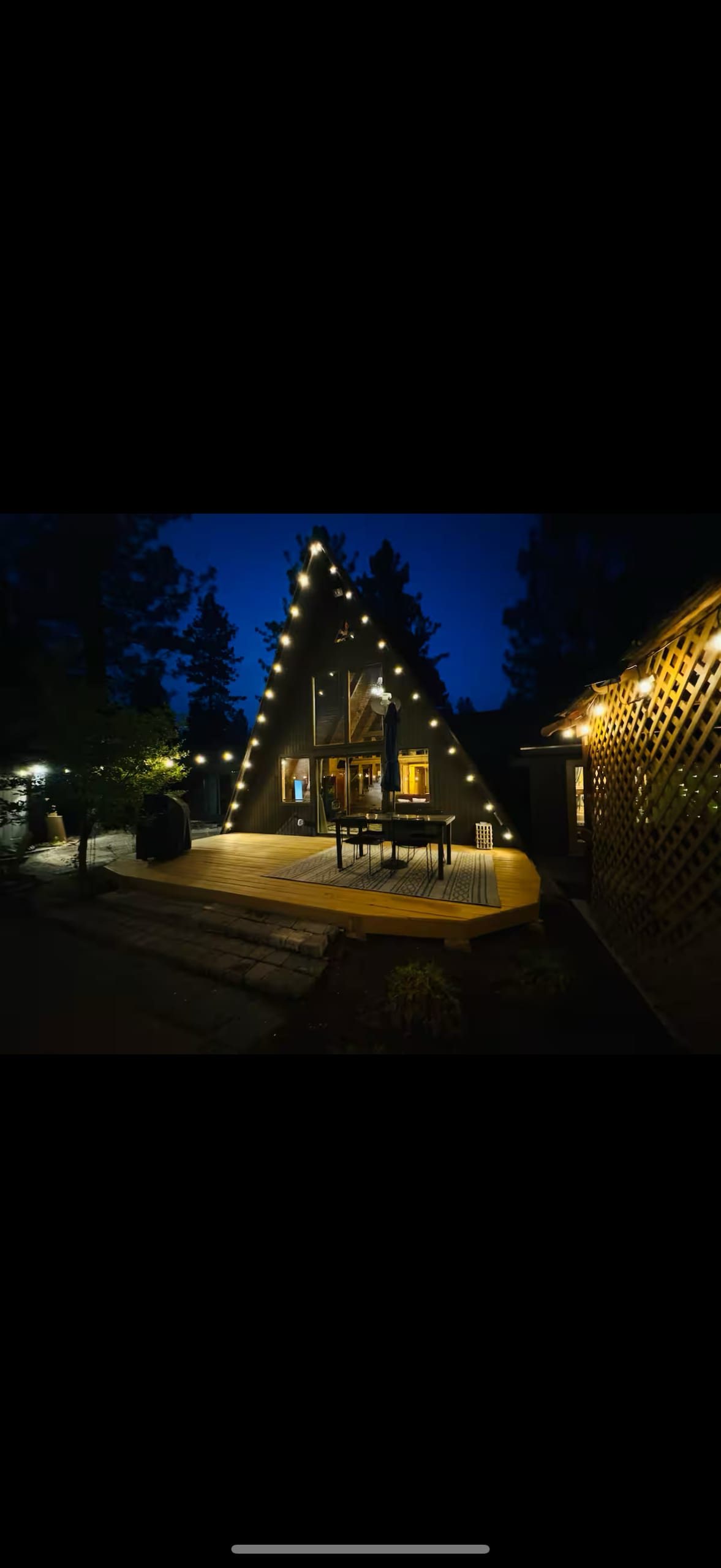 This cozy and unique A-frame cabin sits on 1+ private acres in the Deschutes Forest. Relax here with private wooded pines, new hot tub, soaking bathtub, 80" home theater, modern amenities, and beautiful forest views. Close to the city of Bend and all the outdoor activities Central Oregon has to offer. Proximity to the best hiking trails, mountain bike trails, hot springs, Deschutes River, Mt Bachelor ski resort, Cascade Lakes highway, Smith Rock State Park, and Crater Lake National Park.