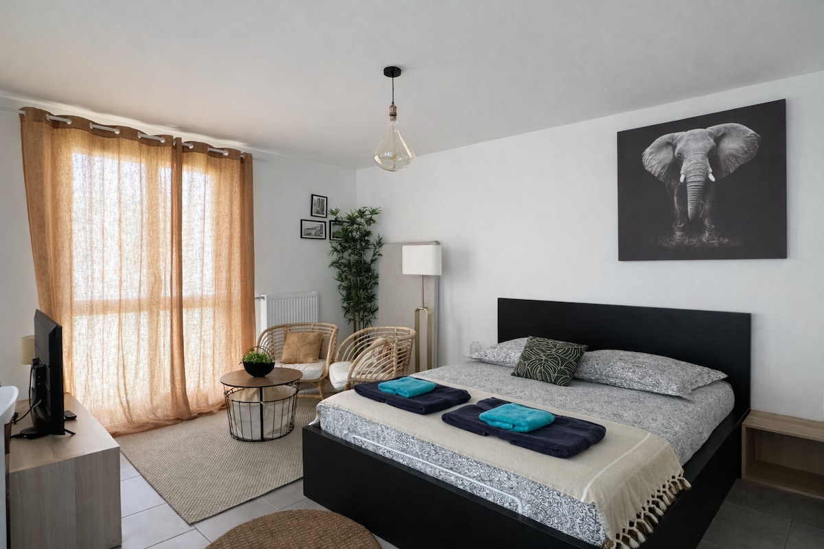 とても静かな住宅地にある、静かで緑豊かな独立したワンルームです。リヨン中心部へのバス停まで5分(市内中心部まで約15/20分)、地下鉄まで12分です。 ダブルベッド、リビングキッチンにシングルベッドを追加可能、ベビー用折りたたみベッド、シーツとタオル、テラス、庭へのアクセス、ペットOK。