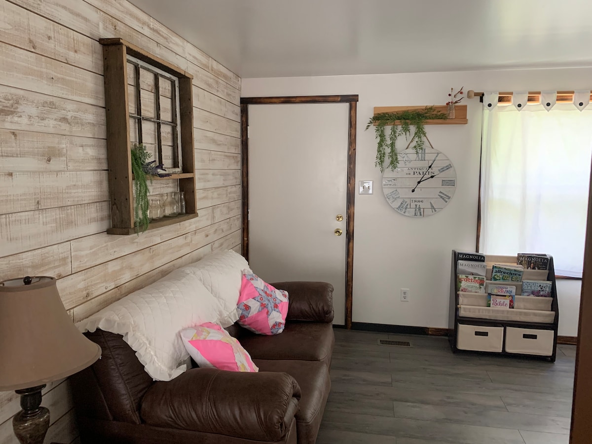 ご予約前にお読みください!!! タイニーハウス! テレビでもご覧いただき、USA TODAY Home Editionマガジンでも取り上げられました(家の中にあるマガジンの69ページをご覧ください)。 18フィート× 8フィートのシダータイニーハウスに滞在しますが、家と同じ機能がすべて揃っています。 ホテルの上にあるかわいい家に滞在し、ファイヤーピット、コーンホール、ブランコなどを備えた囲まれたプライベートエリアをお楽しみください。 どんなタイプの滞在にも最適です。医療分野の旅行者も歓迎です! パーカーズバーグWVとマリエッタオハイオ病院にとても近いです。