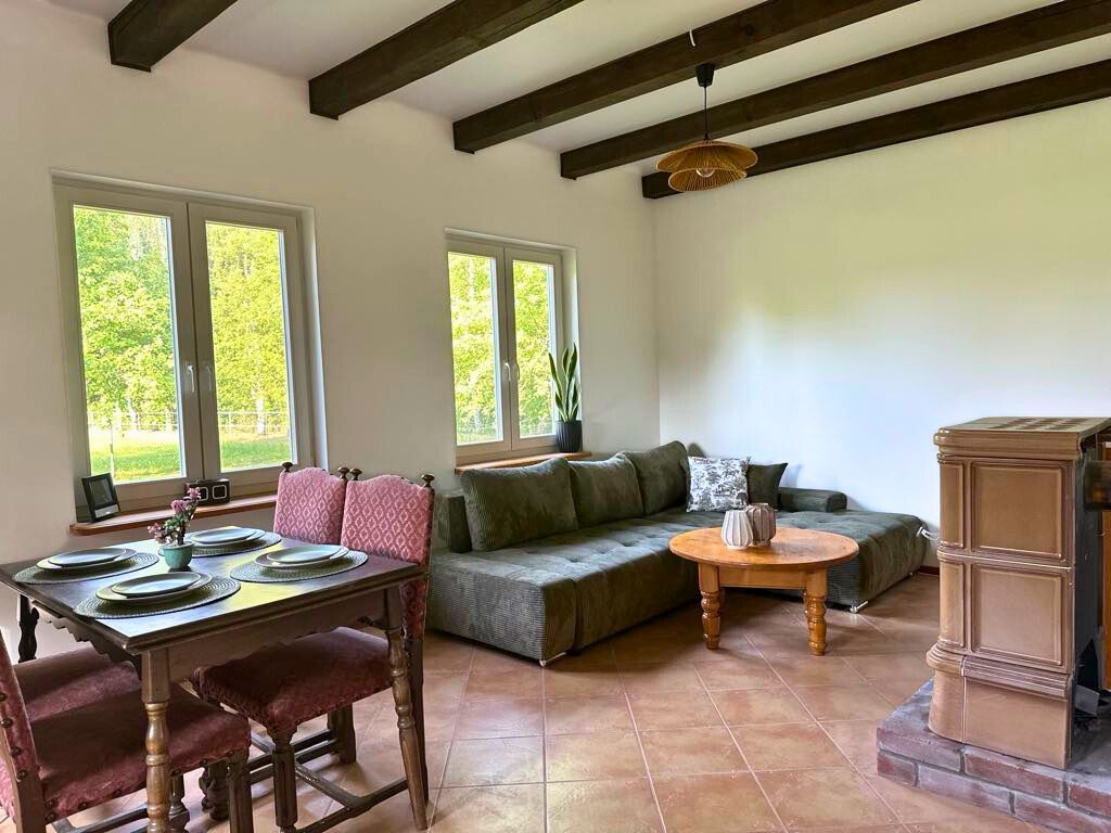 Natura 2000公園の端に位置するこの田舎のコテージは、かつて広大なクフレウ荘園の鍛冶屋の家でした。dwor-kuflew.comをご覧ください。 カワセミ、カエル、ビーバーが生息する池の上にあります。 近くには、厩舎と邸宅の遺跡、聖アントニウスの古い記念碑がある公園があります。 近くの池で釣りができます。 このエリアは鳥や昆虫が豊富です。 都会の騒音にうんざりしている人のための、野生の隠れ家的オアシスです。