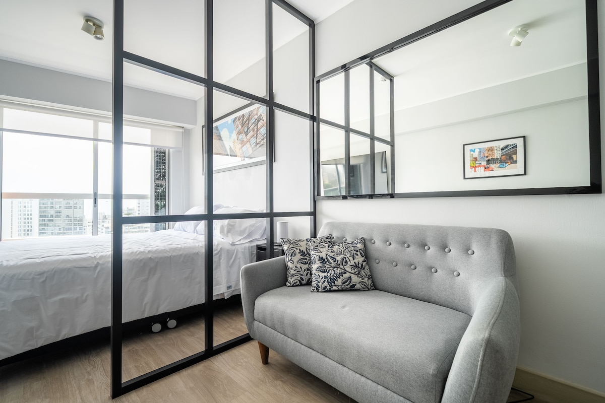 ミラフローレス中心部にある洗練されたブティックロフトには、キングスイート、1.5バスルーム、緑豊かなバルコニーがあります。柔らかなアンビエント照明とクリーンな建築デザインが、落ち着いたエレガントな雰囲気を演出します。グルメキッチン、スマートテレビ、高速Wi-Fi、洗濯機・乾燥機、長期滞在向けの週1回の清掃、地下駐車スペース2台分をご利用いただけます。ケネディパークと海から数歩。静かでデザイン性の高い宿泊先です。