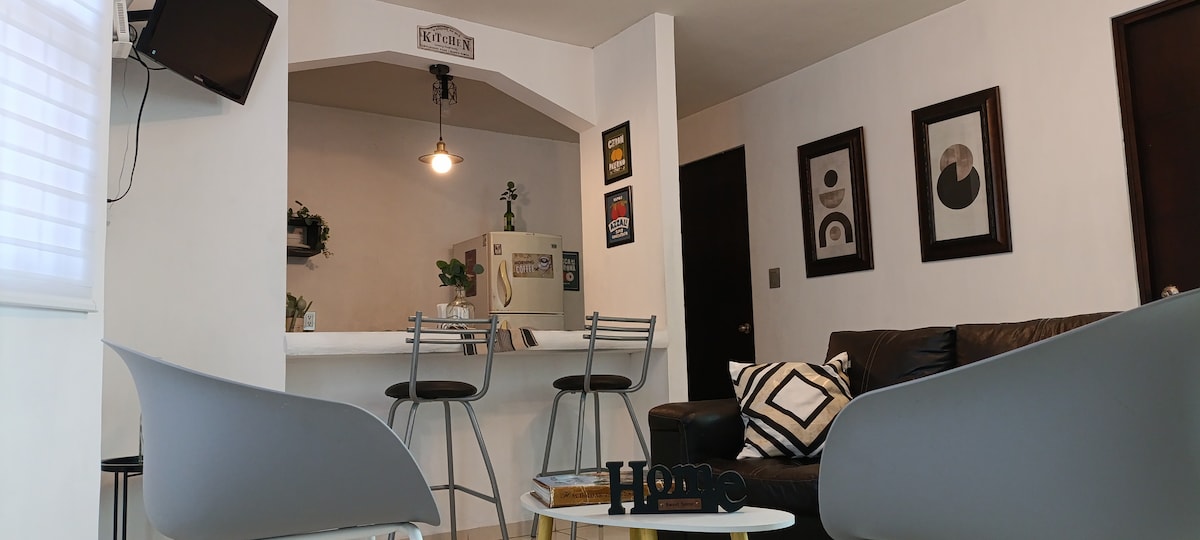 Departamento minimalista, cómodo, acogedor, encontraras espacio para el descanso, el trabajo, y disfrutar una estancia tranquila, cercano al aeropuerto, playa, universidades, supermercados, un lugar que te permite llegar en pocos minutos a los puntos de interés turísticos, de negocio y culturales.