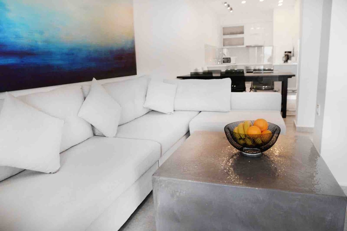 カルマアパートメント。ミニマルでモダンなアパートで、間違いなくリラックスでき、休暇に最適です。レイアウト、色、空間が忘れられない滞在を演出してくれます! 2つのバスルームと、家のように料理をしてくつろげる広いキッチン。大きな引き戸からテレンドス島の景色を眺めながら、くつろぐことができる明るいリビングルーム。最後に、壮大な夕日を眺めながら、屋外家具が備わった2つの大きなベランダで食事や飲み物を楽しめます!