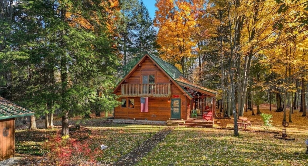 Relax with the whole family at this peaceful place at the end of a private road 300 ft from National forest Trails. Bring your machines or just come to hike. We are down the road from White Birch campground where you can rent Tubes, kayaks & 🛶 or bring your own. The cabin sleeps 11 with 2 living rooms, game table, poker table, and a wood burning stove. Sit by the 🔥 and enjoy the river. The cabin is secluded but only a 20 min drive to Houghton Lake, Lake city and 1 hour to Traverse city.