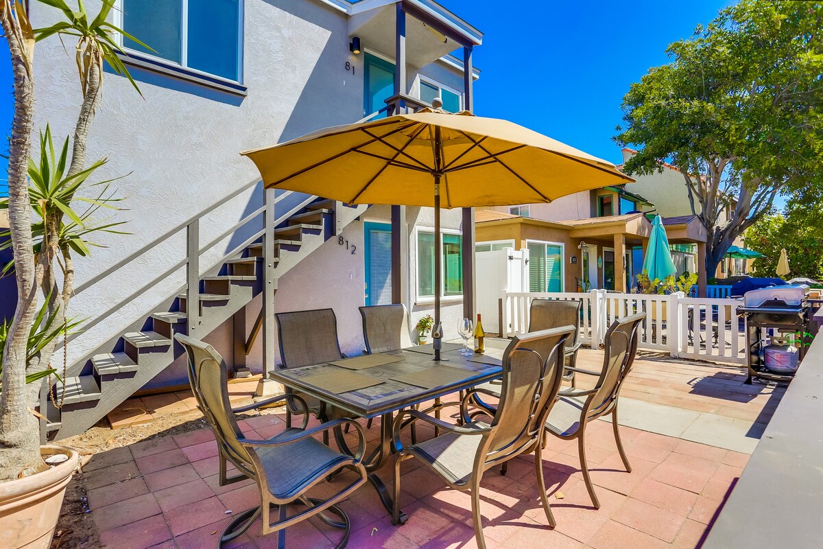 Just one block from the bay, this quiet and cozy beach house with a fully fenced private patio is ideal for anyone who wants a coastal getaway, while still being close enough to the attractions, restaurants, shopping, and nightlife of San Diego. We have all the amenities you need, a new AC unit, a comfy King-size bed, coffee bar, BBQ, 2 beach cruiser bikes, 2 stand-up paddleboards, beach chairs and floats. Walkable to restaurants, parks, the beach, and the bay. 1 private parking spot.