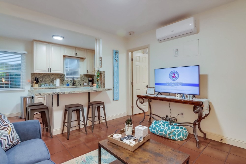 この明るく居心地の良いコンドミニアムの窓を開けて、潮風を吸い込みましょう。このデラックスコンドミニアムは、ミッドセンチュリーモダンの内装、全体に楽しい色彩が散りばめられ、地元アーティストによる気まぐれなアートワークが特徴です。 ボードウォークからわずか1軒のところにあります。 設備の整ったキッチンは長期滞在に適しています。 エアコン、Wi-Fi/ケーブル、足洗い用シャワー、駐車スペース付き。 建物内にはコインランドリーがあります。 動物不可-屋外にカメラが設置されています アーリーチェックインはできません。近くに荷物預かり所があるかもしれません。
