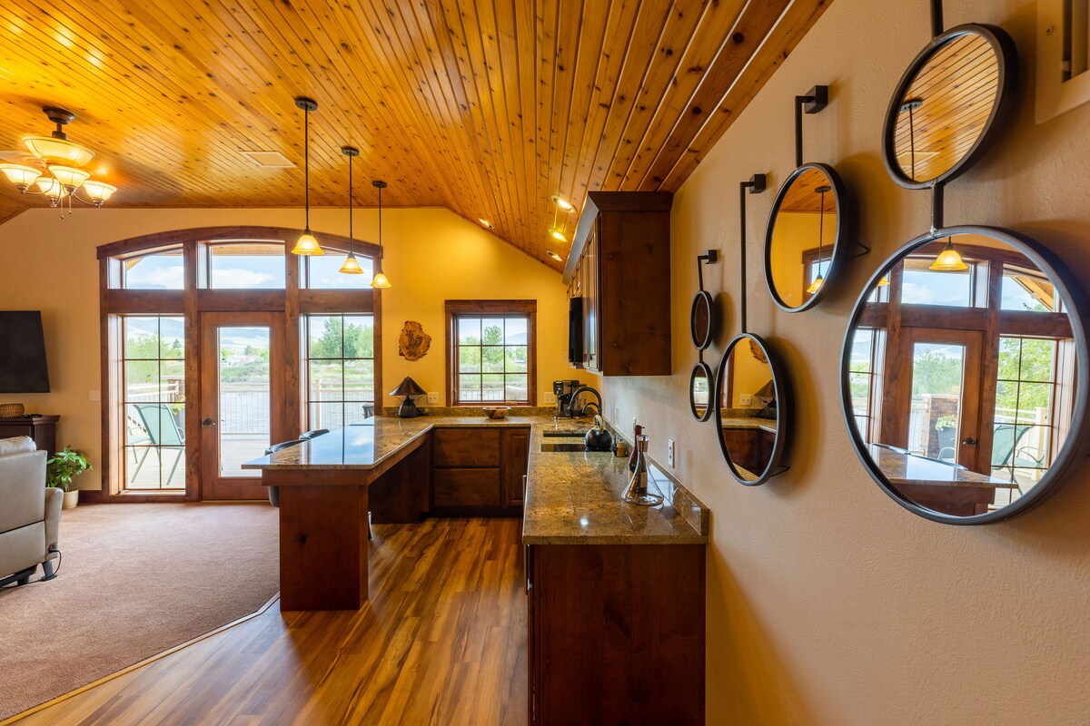 Experience a Missoula exclusive where the River Runs by It amid picturesque Mountain Views. Enjoy birdwatching and wildlife sightings while seated by the fire table on the spacious deck. Walk to nearby shopping, restaurants and riverfront trails. Unleash creativity in this remote-work haven surrounded by nature. Unwind in the stocked wet bar, cozy up by the indoor fireplace, or relax in power recliners while watching your favorite shows. Book a cozy artistic retreat in an Architectural marvel.
