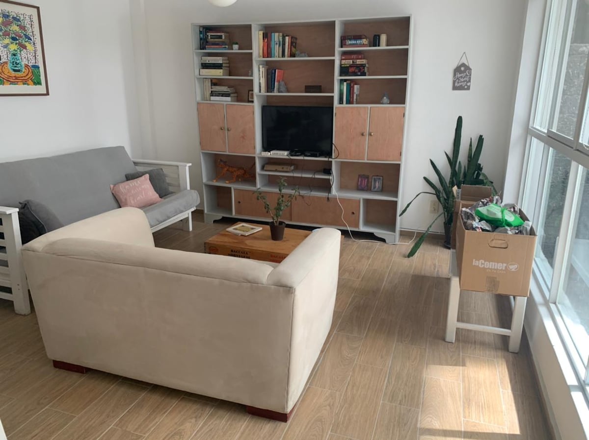 Enjoy a 2 bedroom apartment (4 people) in one of the best neighborhoods in Mexico City. We're less than 2 miles (3 km) away from Coyoacán and Frida's museum, major avenues like Insurgentes Sur and walking distance to tons of restaurants, cafés, shopping malls, galleries, bars, parks and cultural attractions. Need to work while traveling? We turned a bedroom into a lovely office equipped with a vinyl player. Feel free to listen to our records!