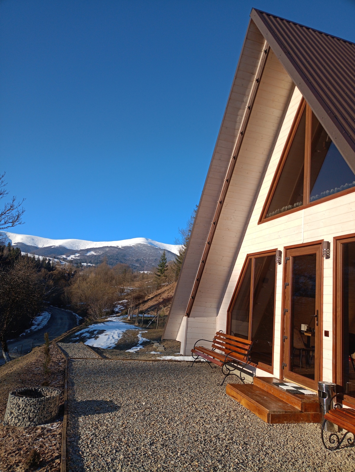 快適な滞在のためのすべてがあります:家電、家具、食器、高速インターネット(光ファイバー)、Wi - Fi。キッチンからテラスに出られ、そこで友達と一緒に座ったり、ハンモックチェアでリラックスしたりできます。また、中庭には必要なものがすべて揃ったバーベキューグリル、無料の薪、駐車場があります。衛生のための使い捨てアイテムのセット、最小限の食品セットを提供しています。すべての窓からは山の景色が見え、近くには川があり、徒歩5分のところには森があり、カラオケ、水タバコ、おいしいメニューのあるレストランが2軒あります。