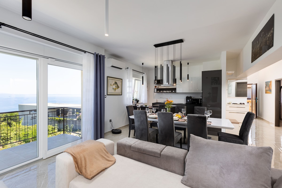 大きなテラスと海の景色を望む美しい地下のアパートメントを気に入っていただけるでしょう。アパートは2019年に新しく建てられた静かな「kvanerska-vila」にあります。高速道路やバスの便が良く、オパティヤ、プリトヴィツェ湖群、市内中心部などへのアクセスに便利です。車でビーチまでわずか10分。 旅行好きのカップル、ビジネスマン、一人旅の方に最適です。 英語、クロアチア語、ドイツ語で流暢にコミュニケーションが取れます。
