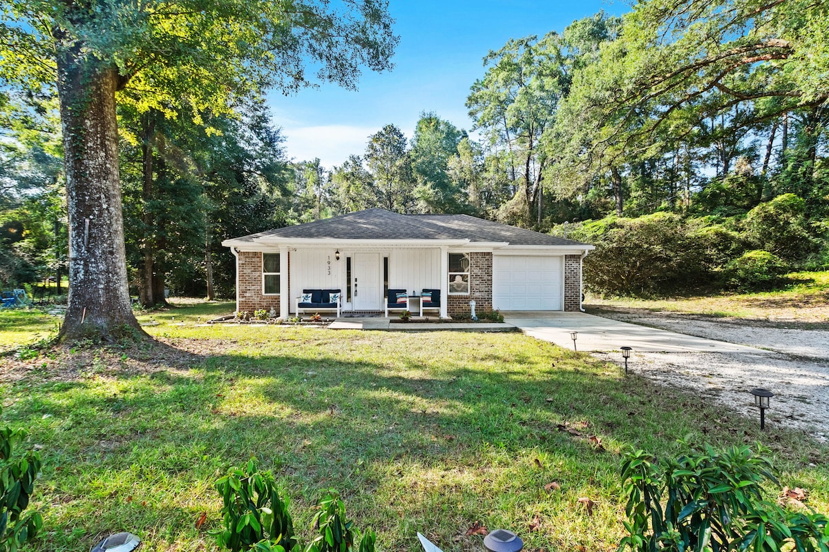 余計なものを使わずにシンプルさと快適さをお探しの場合は、ぴったりの場所です!モービル近くのアラバマ州セムスにあります。この3ベッドルーム、2バスルームの隠れ家は、基本的なものだけで、のんびり過ごすのに必要なものがすべて揃っています。煩わしさも散らかりもなく、リラックスして充電し、必需品を楽しむための空間です。 壁に邪魔になるアートや余分な小物はありません。すっきりとしたラインと「必要なものはすべて、不要なものは一切ない」雰囲気を好む人にはぴったりです。😊