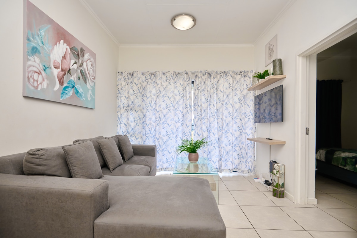 ソーンヒル・エステートの美しく緑豊かで安全な環境にある、ご自宅のような静かな宿泊先へようこそ。管理されたエステートアクセス、24時間警備パトロール、穏やかな住宅街の雰囲気をお楽しみください。 このスタイリッシュな2ベッドルーム、1バスルーム(シャワーのみ)のゲストハウスは、家族旅行に最適です。ORタンボ国際空港までわずか10 ~15分、フラミンゴショッピングセンターまで徒歩5分です。近くにはゴルフ場、パデルコート、自然保護区、自然とレイを楽しめる地元のお店があります。