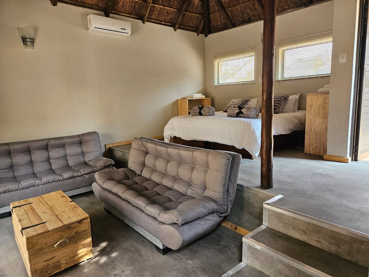 Fully equipped 3 bedroom self catering Bush cabin perfect for families, in Droogekloof near the popular town of Bela Bela and the private game reserve of Mabalingwe . Perfect for guests looking for a bushveld breakaway. With open plan kitchen diner and lounge on the first floor. A patio area with braai and fire pit is located at the front of the property. Its a special place to relax, read, write, work remotely, cycle, walk, jog and spend quality time connecting with people you care about.
