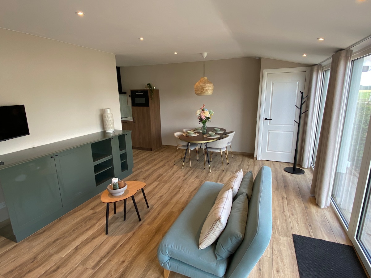 自分のアパートからオイステルワイクを体験 オイステルワイクの森の端にある開けた場所にあるミニキャンプ場は、自然、快適さ、冒険を愛する人々にとって静かな拠点です。この場所の真ん中には、5人用の真新しいアパートがあり、プライベートテラスが完備されており、アクティビティの満載な1日の後にリラックスできます。 宿泊施設はベッドリネンを含めて貸し出されていますが、バスタオルは含まれていません。