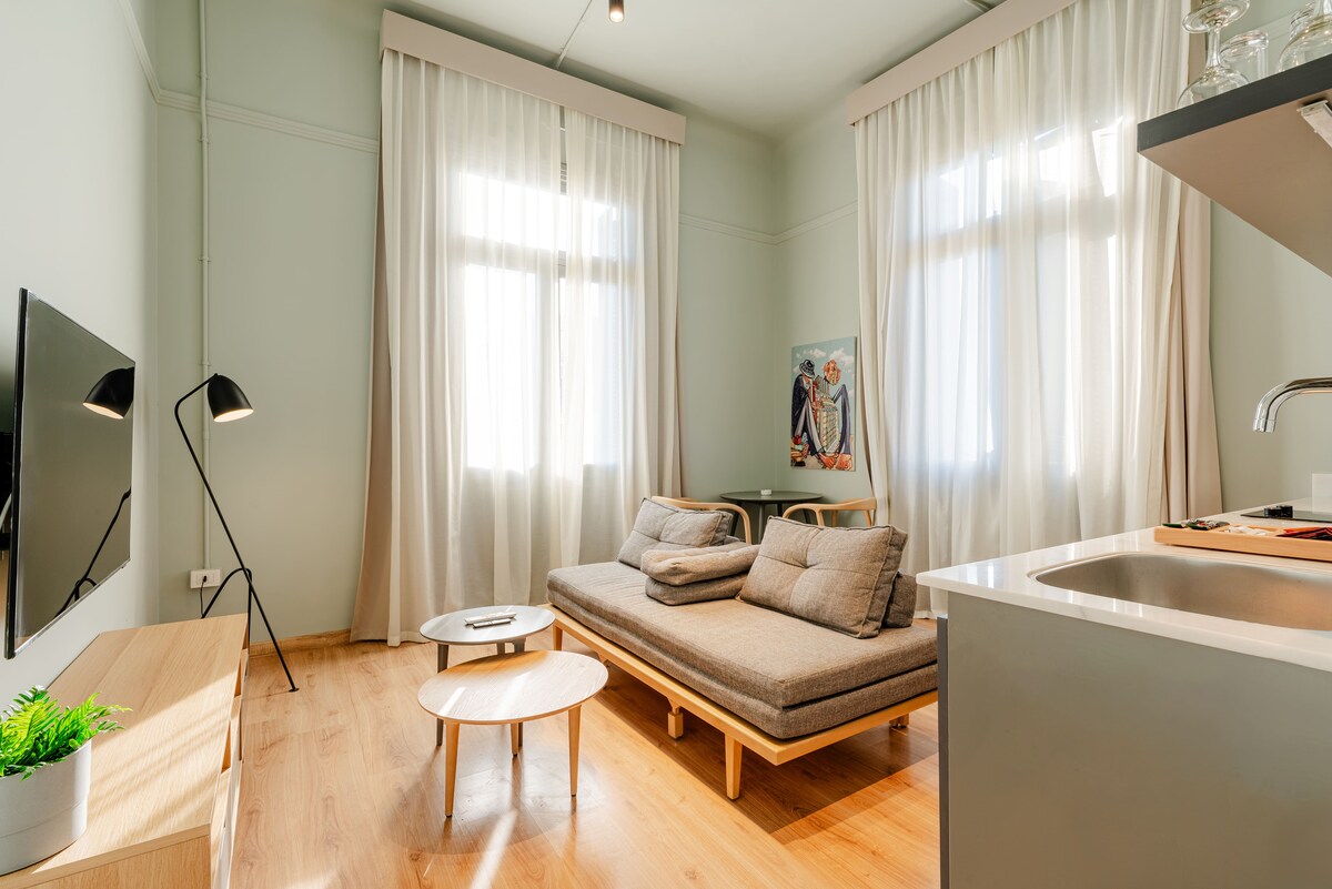 完璧なシティステイへようこそ。快適なキングサイズのベッドと快適なリビングエリアを備えた、居心地の良い清潔で考え抜かれたデザインのワンルームアパートです。 このスタジオは魅力的な博物館とレバノン大使館を見渡すことができ、歴史的な建築物の静かで絵のように美しい景色を楽しめます。 外に出ると、街が誇る最高のレストラン、カフェ、地元のスポットに囲まれた賑やかな通りの中心部にあります。すべて徒歩圏内です。