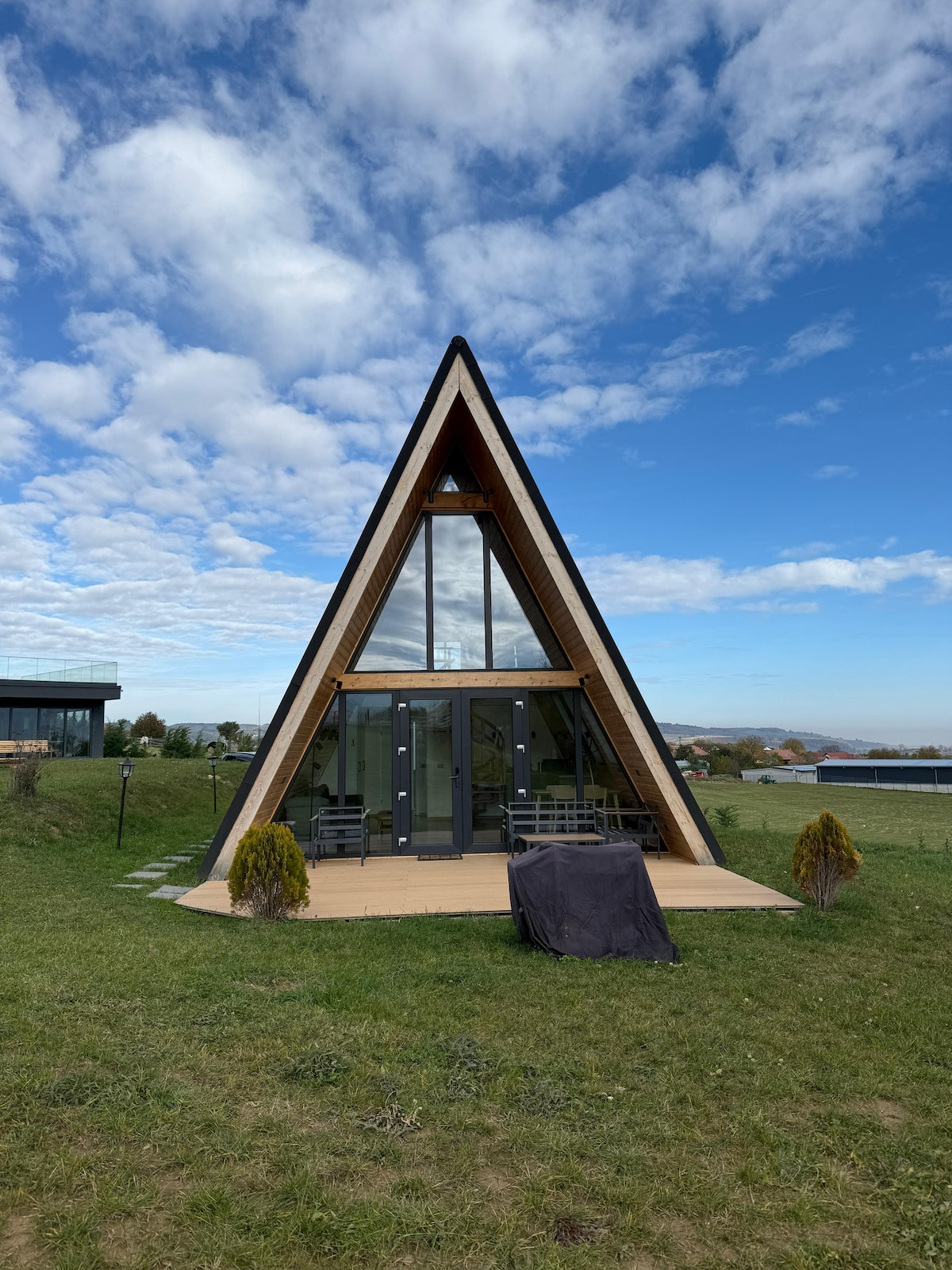 Carpathian Log Homeは、野生の牧草地がある大きな敷地内にある、ガラス張りの木造シャレー2棟の複合施設で、森にとても近いです!シャレーは、伝説のブラン(ドラキュラの)城の近く、ピアトラクライウルイ国立公園の入り口にあります。寝室5部屋と専用バスルーム、高い天井のリビングルーム、暖炉、山の景色を眺めることができるガラス張りの壁、グルメキッチン、サウナとジャグジー、大きなガゼボとバーベキュー、大家族に最適、ポイアナブラショフのスキー場の近くにあります。