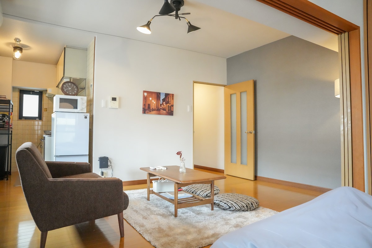 A clean and cozy one-room apartment for a woman, conveniently located just 1 minute from the subway and bus stop. 24-hour shops are nearby. The room includes cooking utensils, a rice cooker, and a semi-double Sealy bed for a comfortable sleep. There are also 3 washer-dryers in the building. The maximum stay is 180 days a year, so please book early. This resets every April. Updated pricing for quality maintenance: from ¥5,500/night in 2026, with possible slight increases due to Japan’s inflation.