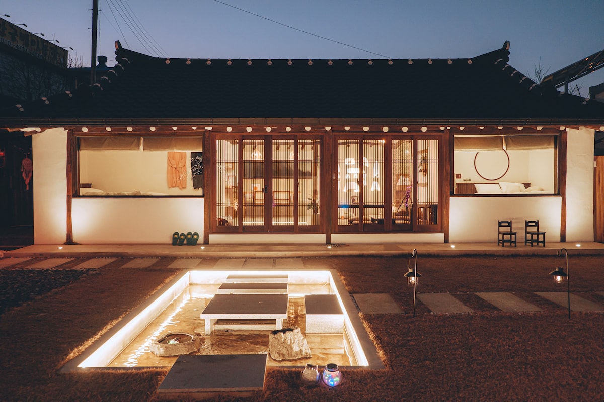노천탕 한옥독채펜션 넓은마당 확 트인 뷰 최신시스템 힐링 할 수 있는 감성숙소입니다