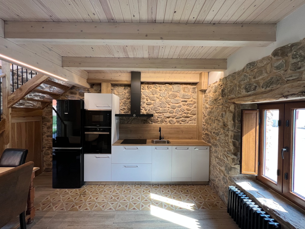 石と木材を使った素朴な家族用の家、ベルシア山脈の古く典型的な農家の家で、4人まで宿泊可能です。2階建てで、1階にはリビングとキッチンがあります。2階には、バスルームとダブルベッドを備えた屋根裏部屋があります。ポーチとバーベキューが付いた専用庭があります。