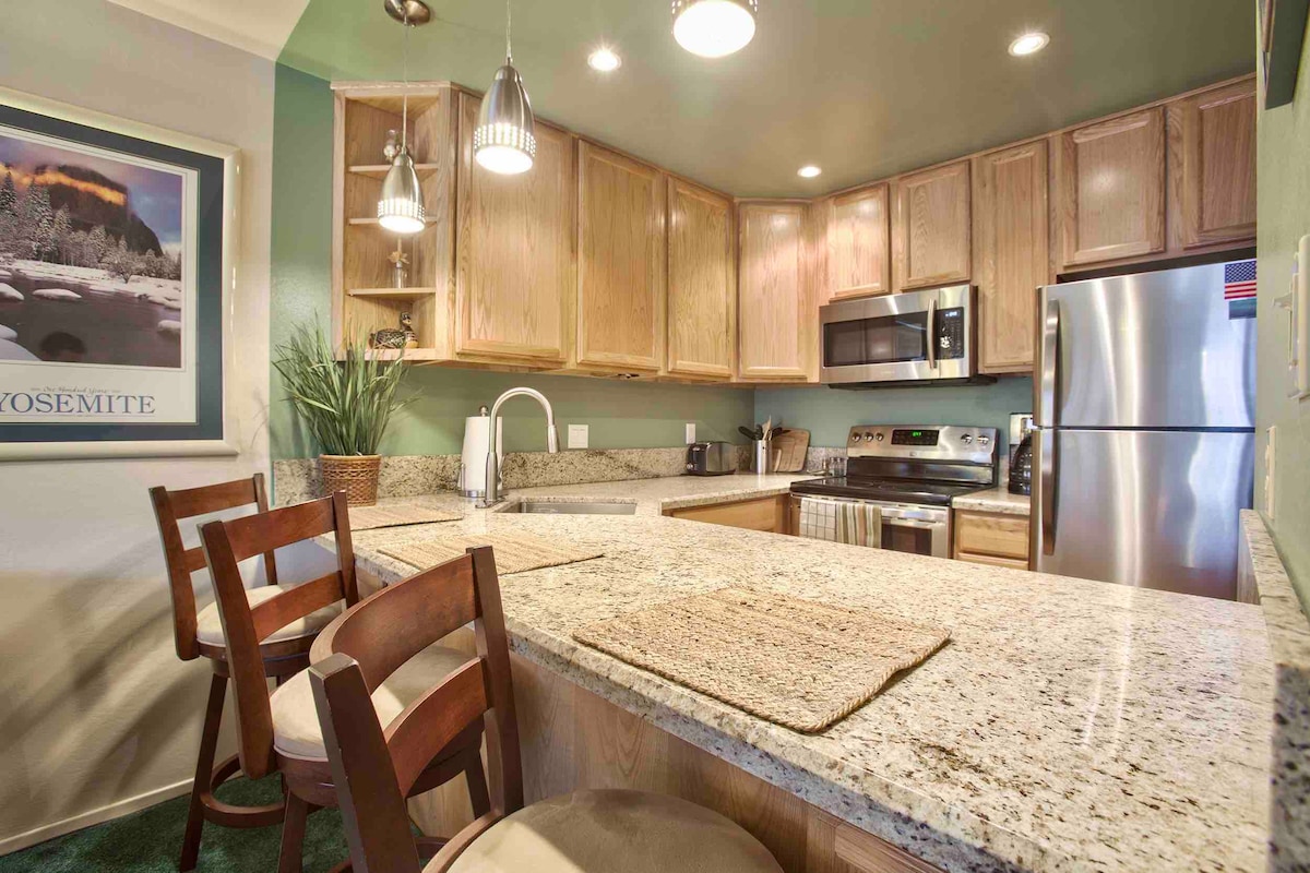 ペットOK(犬1匹まで、猫は不可)の1ベッドルームのコンドミニアムは、レストラン、エンターテイメント、ショッピング、無料のマンモス・レイクス・シャトルから徒歩数歩の素晴らしいロケーションにあります。 キッチン、バスルーム、リビングスペースを最近改装しました。 マンモスは、すべてのウィンタースポーツに最適なスキーリゾートです。 夏は完璧な天気、ハイキング、釣りができる素晴らしい季節です。釣り道具をご用意しております。 昼は暖かく、夜は涼しい、完璧な天気です。