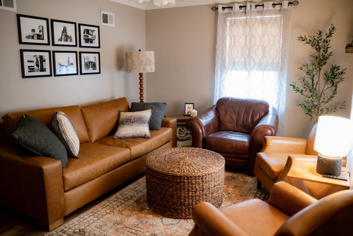 Nestled right in the heart of downtown Waterloo, The Brickhouse is a cozy, eclectic getaway just blocks from all of the local restaurants, bars, and adorable shops ready to serve you. With two bedrooms, Brickhouse has one king size bed, four twin beds, and a pull out queen sized sofa to sleep up to 8 guests. Brickhouse has a kitchen stocked with all of the essentials you will need to cook meals. Other amenities include wifi, a 55' high definition TV, washer and dryer, and toiletries provided.