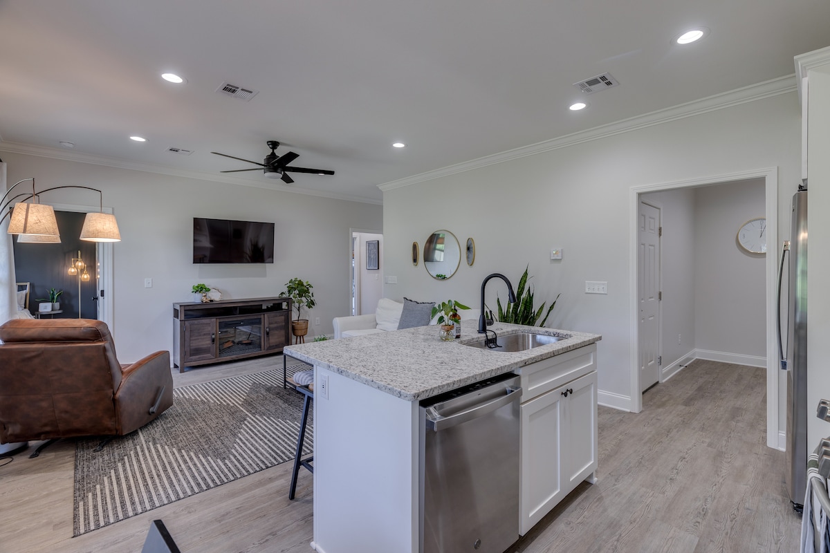 この新築の職人の家は、ウェスト・モンローの中心部に位置しています。 宿泊施設には、2ベッドルーム、2バスルーム、ガレージ1台分、仕事専用スペースがあります。 6名様が宿泊可能で、細部にわたり完全に家具が取り付けられており、小さな池を見下ろす居心地の良いパティオがあります。 この家は、地元の病院、Ike Hamilton Expo Center、コンベンションセンター、ウェストモンローシティスポーツコンプレックス、サージエンターテイメント、レストラン、ショッピングからわずか数分で、州間高速道路、空港などへも簡単にアクセスできます!
