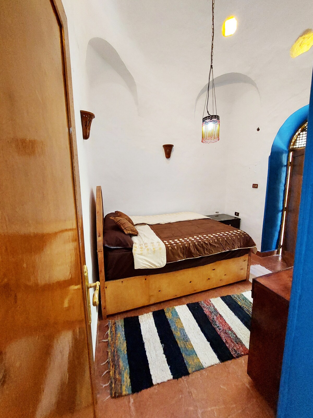 A delightful two floor space with internal stairs, large dome bedroom on the 2nd floor, large private roof terrace with spectacular mountain views , with valley of the queens straight ahead , a super peaceful location set in traditional farmlands, but 7 mins walk to Medinat Habu the nearest temple, so you can enjoy the peaceful magic of Luxor after a busy day visiting the temples. A place to just be.